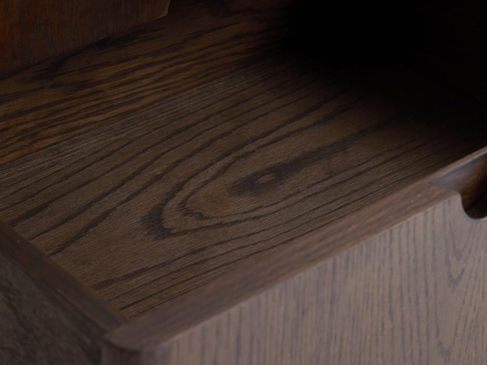 Arun TV-bordet er designet med rene linjer og et klassisk rektangulært udtryk, der passer perfekt ind i både moderne og traditionelle stuer. Den smukke espresso brown Woca olie-finish fremhæver egetræsfinérens naturlige struktur og giver møblet et varmt, eksklusivt udtryk. Med sin brede på 160 cm og lave højde på 55 cm er det ideelt til de fleste TV-størrelser.