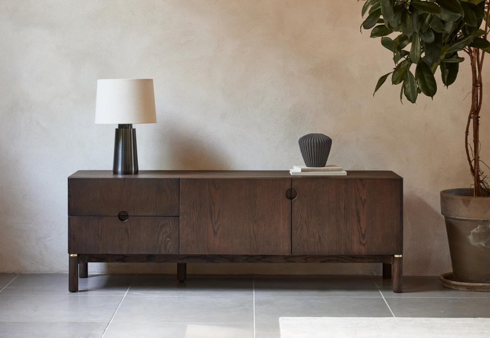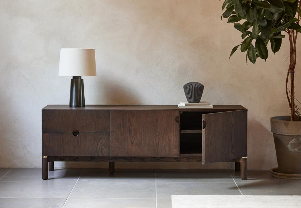 Den dybe espresso brown farve skaber et elegant og varmt udtryk, der fungerer som et smukt ankerpunkt i stuen. Kombiner TV-bordet med lyse vægge for kontrast, eller par det med varme jordfarver for en harmonisk, organisk stemning. Style toppen med en soundbar, dekorative objekter eller grønne planter i potter ved siden af TV'et for at skabe balance. Match med andre møbler fra Arun-serien for et gennemført look.