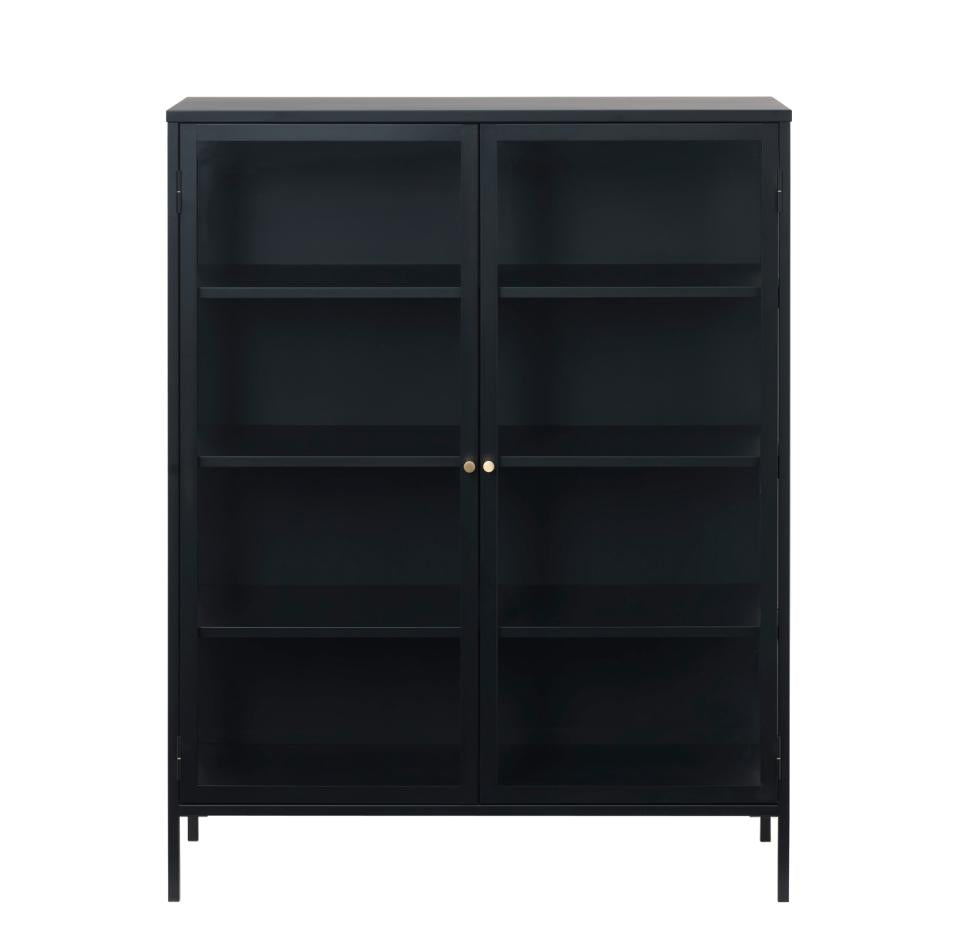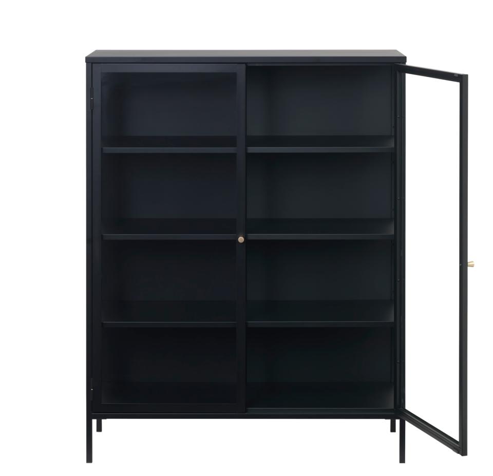 Carmel skabet er et elegant og funktionelt opbevaringsskab med glaslåger og sider, der gør det perfekt til både opbevaring og fremvisning af dine yndlingsting. Den sorte metalramme kombineret med gyldne håndtag skaber et tidløst, moderne udtryk, der passer ind i enhver indretningsstil.