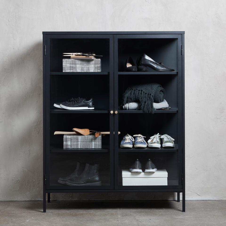 Carmel Skab Sort - Elegant Opbevaringsskab med Glaslåger!