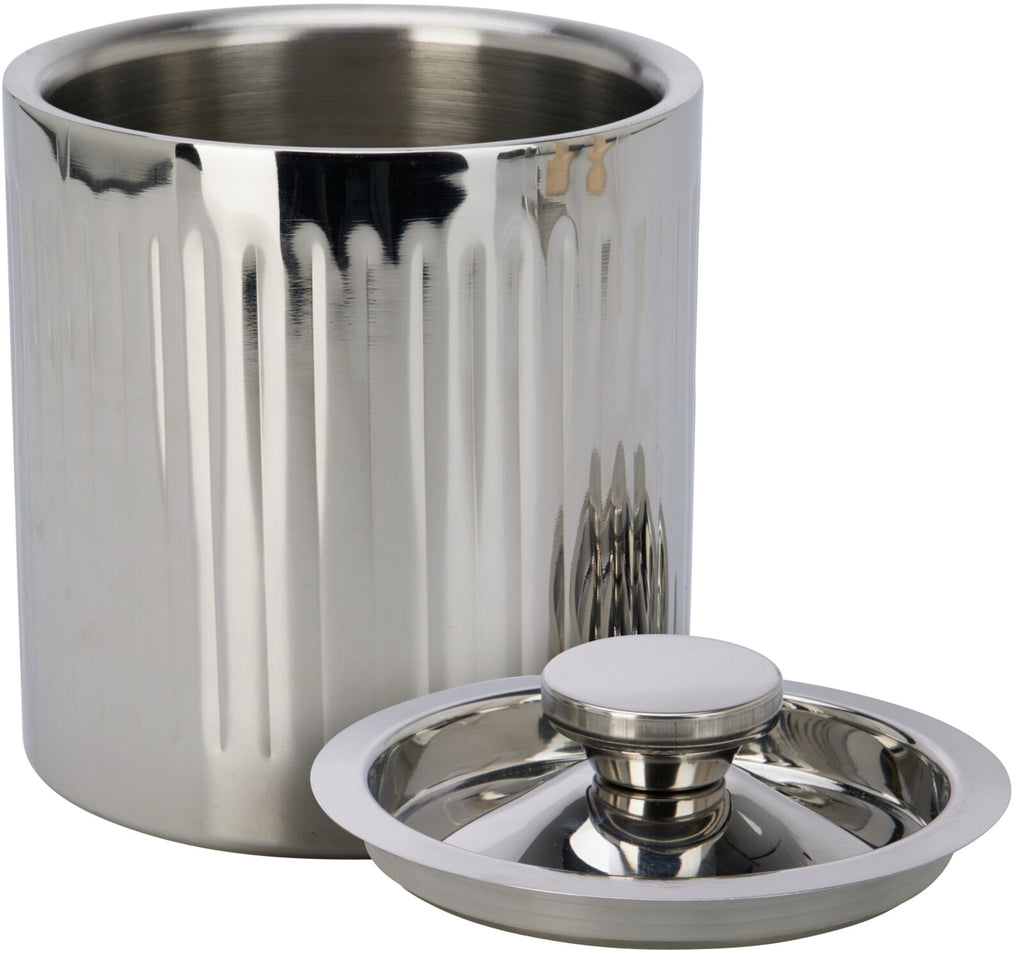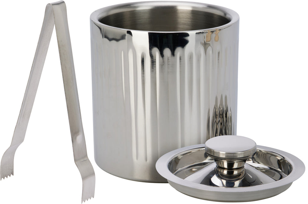 Elegant isspand i rustfrit stål med låg og tang