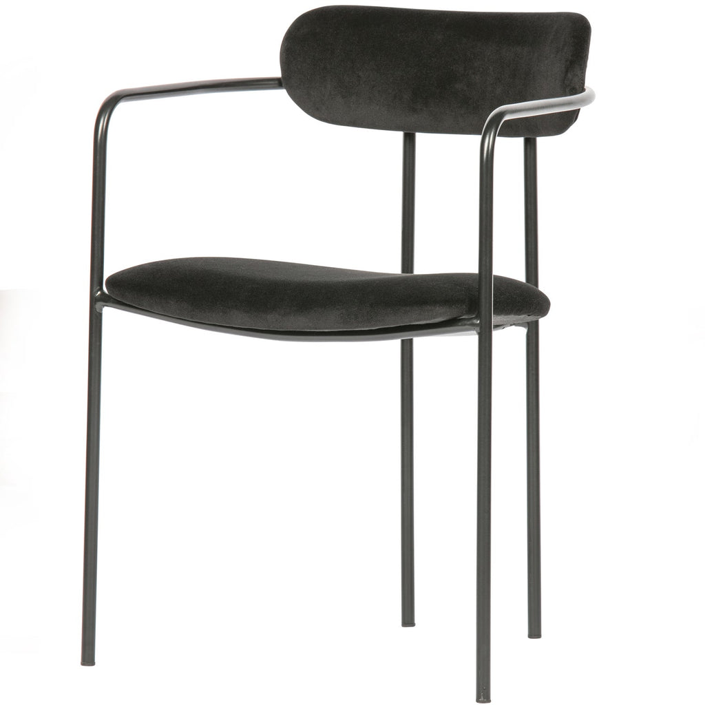 Ivy spisebordsstol er ideel til spisestuen, hvor den fungerer som en elegant og komfortabel siddemulighed ved bordet. Den kompakte størrelse og lette vægt gør det nemt at arrangere stolene omkring bordet, og den sorte velour-overflade skaber en luksuriøs atmosfære.
