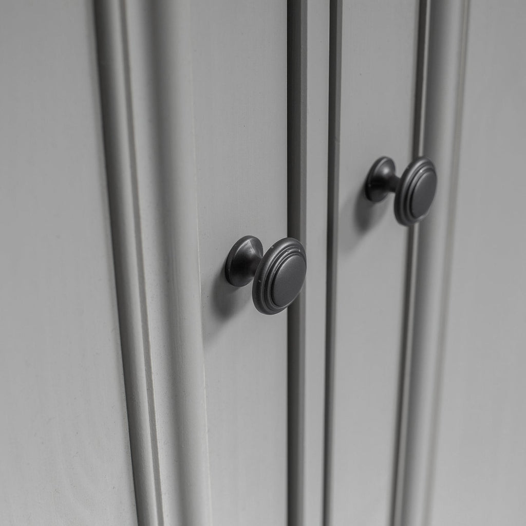 De sorte metalknapper tilføjer et moderne touch og gør skabet nemt at åbne og lukke. Indersiden af skabet er 38 cm dyb.