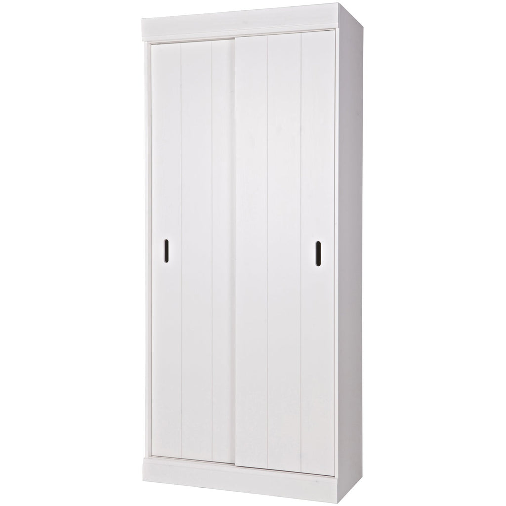Row Skab med Hylder og Skydedøre FSC i Hvid - Trendy Design med Fyr Træ