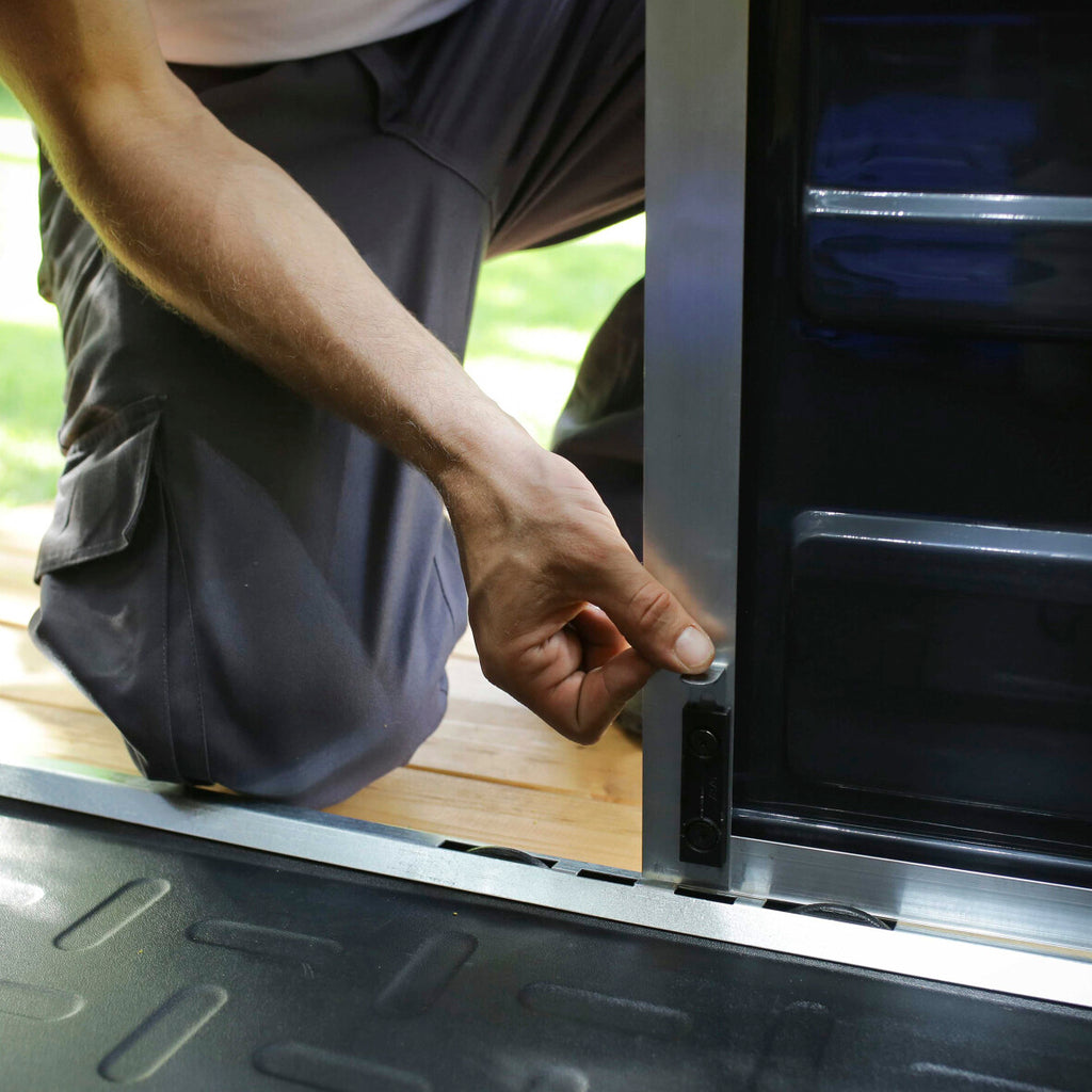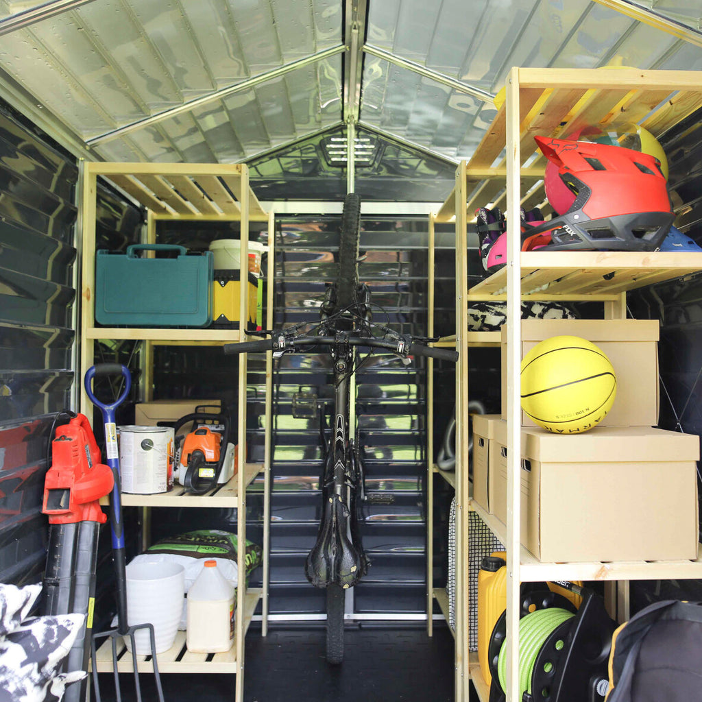 Det unikke SKYLIGHT ovenlystag giver et behageligt, naturligt lys inde i skuret i dagtimerne, mens det samtidig sikrer mod indkig. Det stærke polycarbonat materiale er 100% UV-beskyttet, så dine opbevarede effekter ikke falmer eller ødelægges af solens stråler.