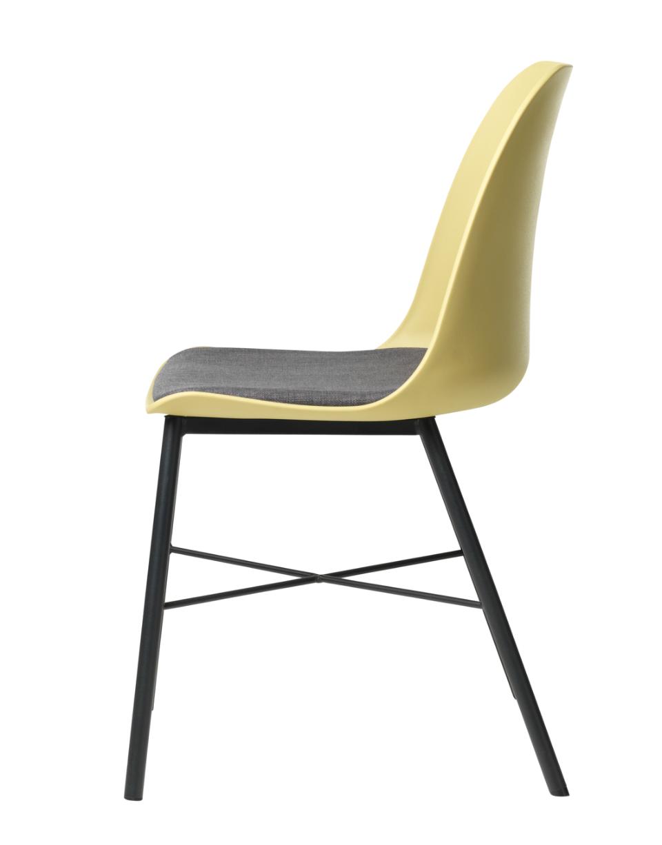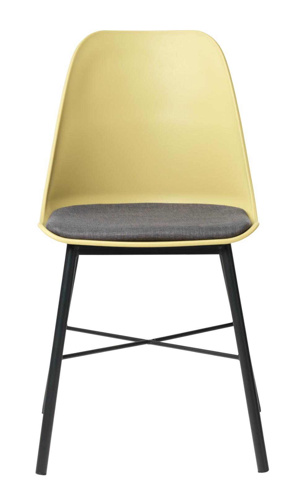 Sælges i sæt af 2 spisebordsstole - Tilføj varme og personlighed til spisestuen med Whistler spisebordsstolen i støvet gul. Denne polstrede spisestuestol kombinerer trendy farve med behagelig siddekomfort. Det holdbare gule Rio-stof og de sorte krydsben giver et moderne og indbydende udtryk, perfekt til dig der ønsker farverige stole.